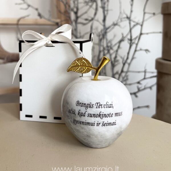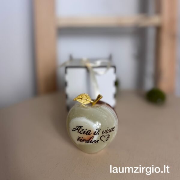 Graviruotas onikso akmens obuolys, tai nuoširdi dovana įvairioms progoms.