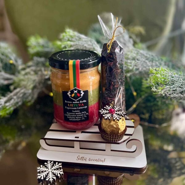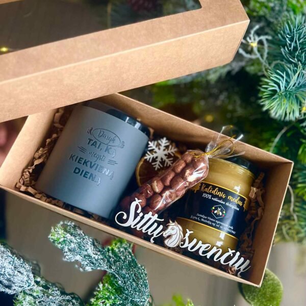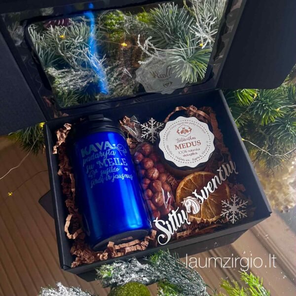 - Su balta dėžute, kurios matmenys 8,5×10×11 cm.