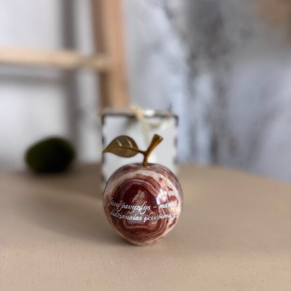Graviruotas onikso obuolys 9cm su padėkliuku mokytojai