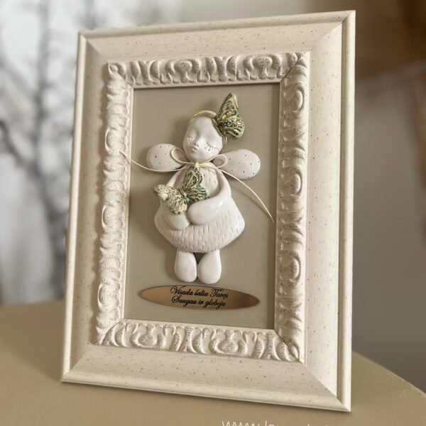 Keraminis angelas rėmelyje „Angelas sargas”