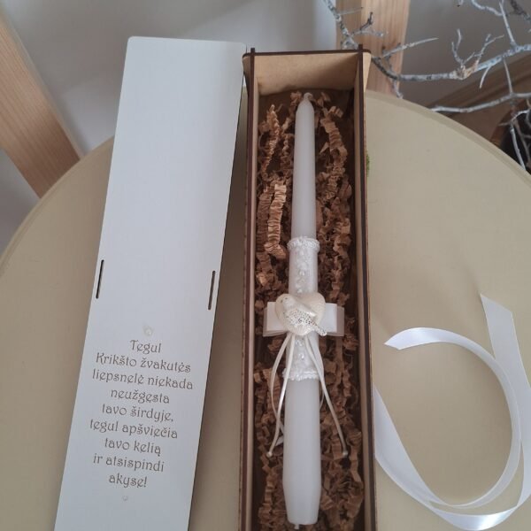 • krikšto žvakės ilgis 30 cm, skersmuo 2,5 cm