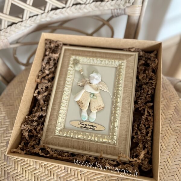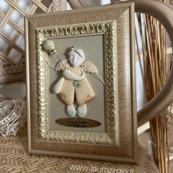 Autorinis Laumžirgio namų rankų darbo keraminis angelas rėmelyje.