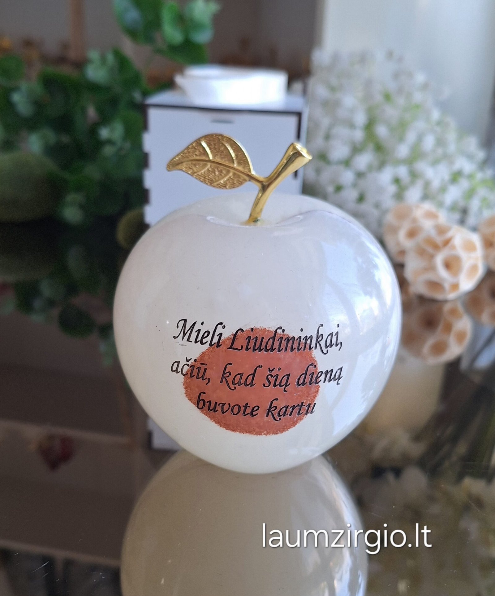 - Tekstas ant obuolio išgraviruotas lazeriu.