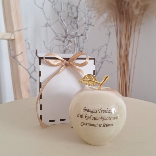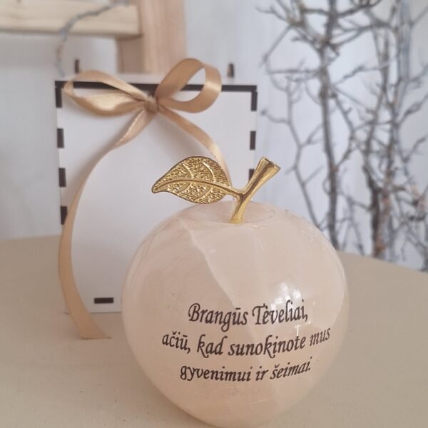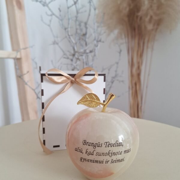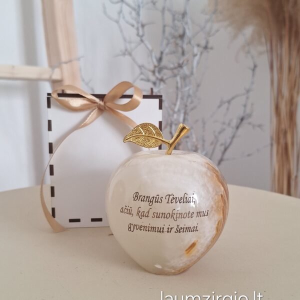 Graviruotas onikso obuoliukas „Tėveliams“ – ypatinga dovana iš širdies