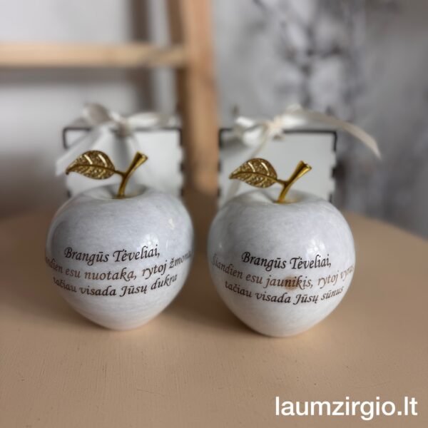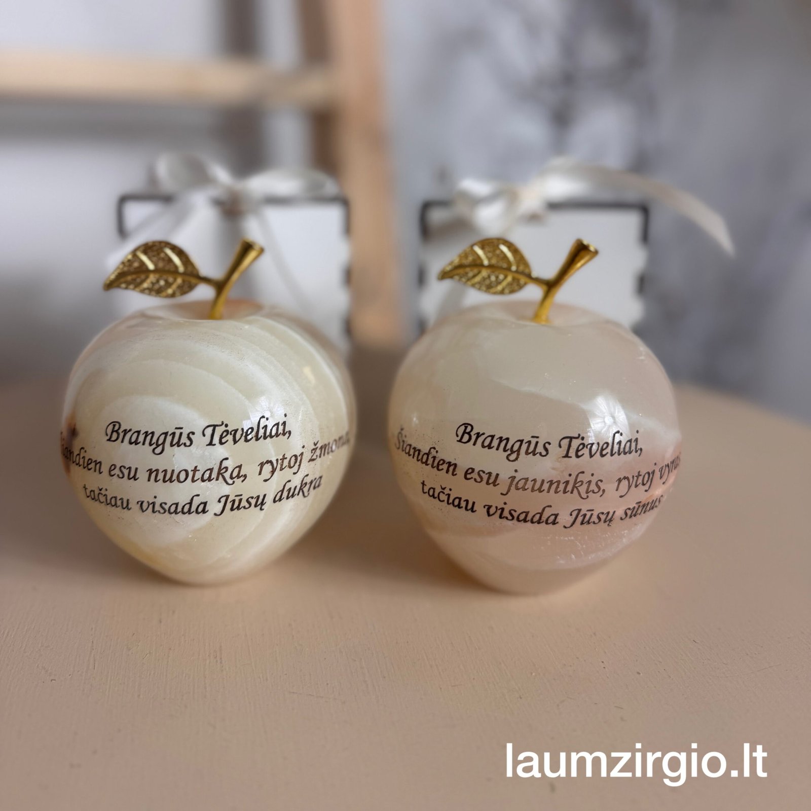 Graviruotas onikso obuoliukas „Tėveliams“ – ypatinga dovana iš širdies