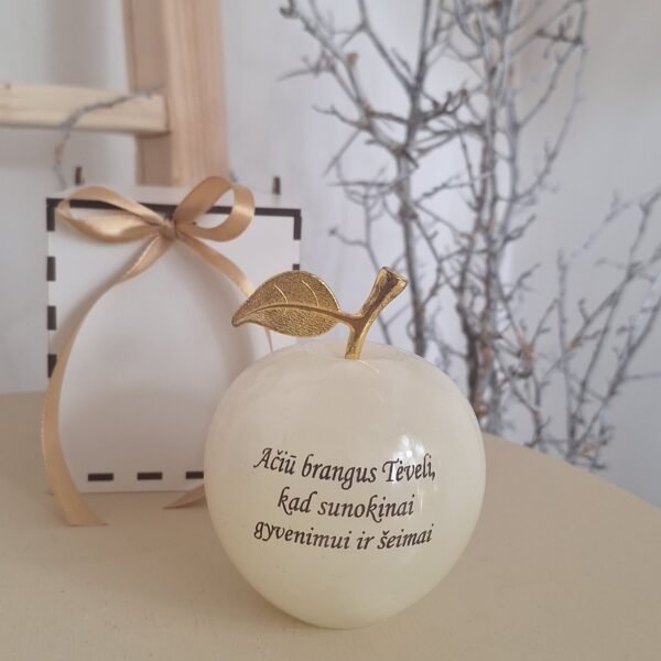 Graviruotas onikso obuoliukas „Tėveliui“ – prasminga ir ilgaamžė dovana mylimam tėčiui