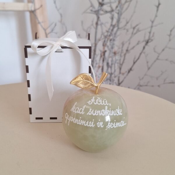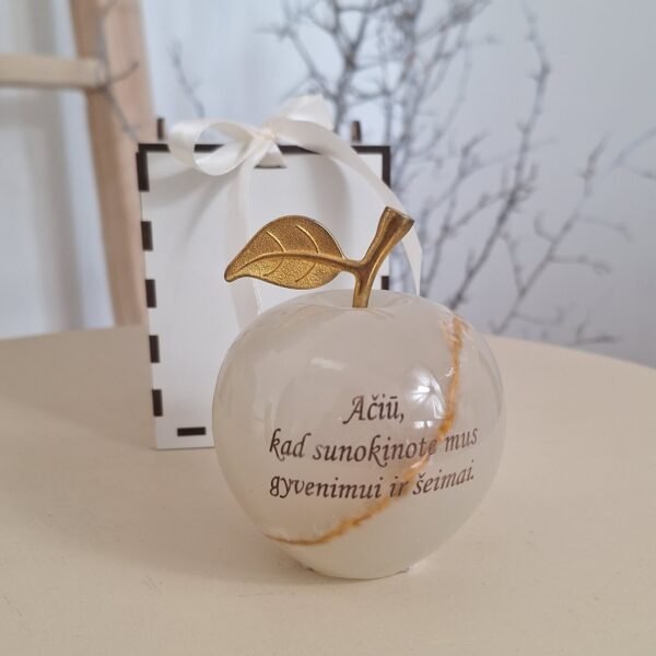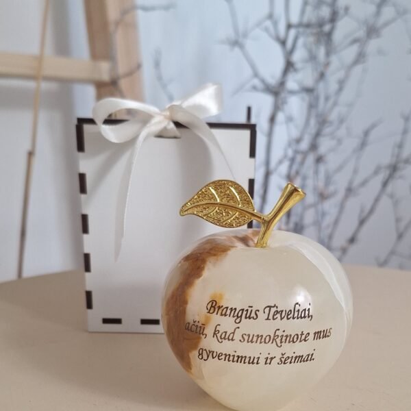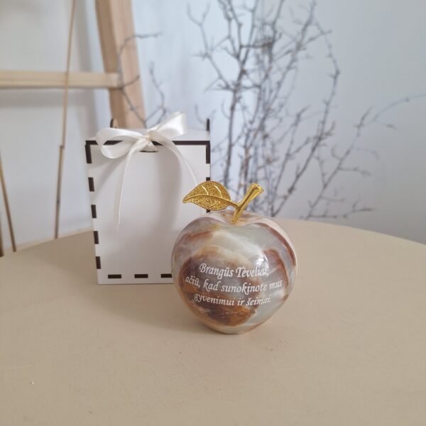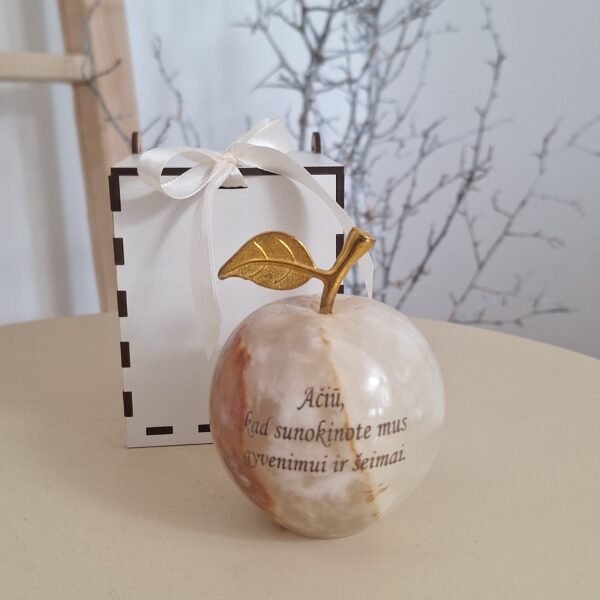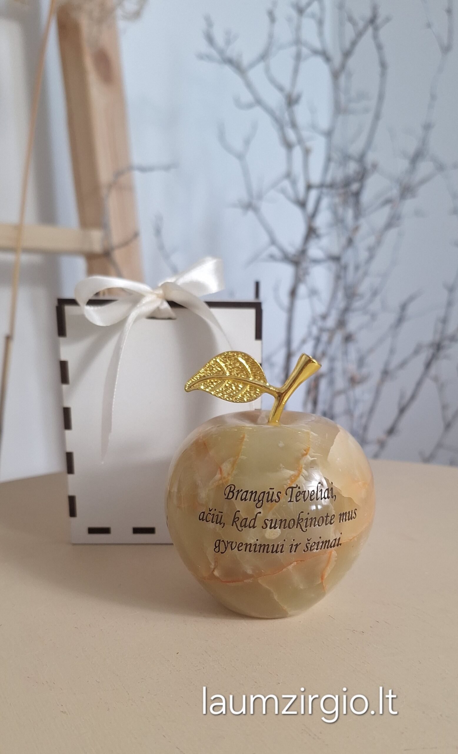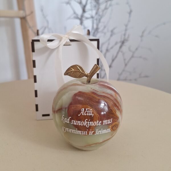 Graviruotas onikso akmens obuolys, tai nuoširdi dovana įvairioms progoms.