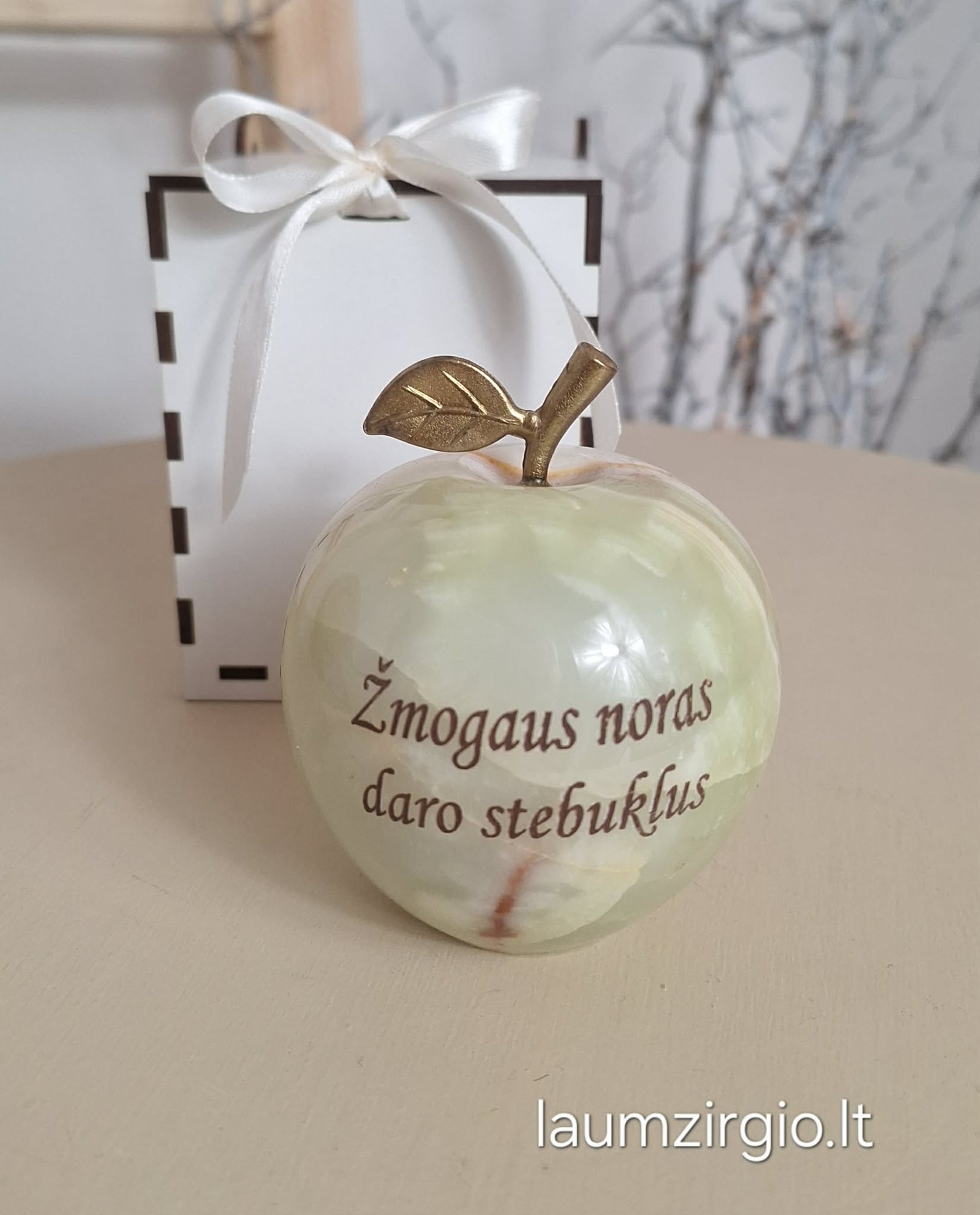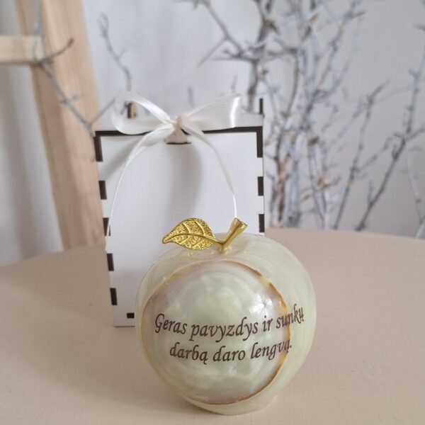 Graviruotas onikso akmens obuolys, tai nuoširdi dovana įvairioms progoms.