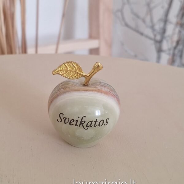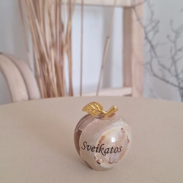 Graviruotas onikso akmens obuolys, tai nuoširdi dovana įvairioms progoms.