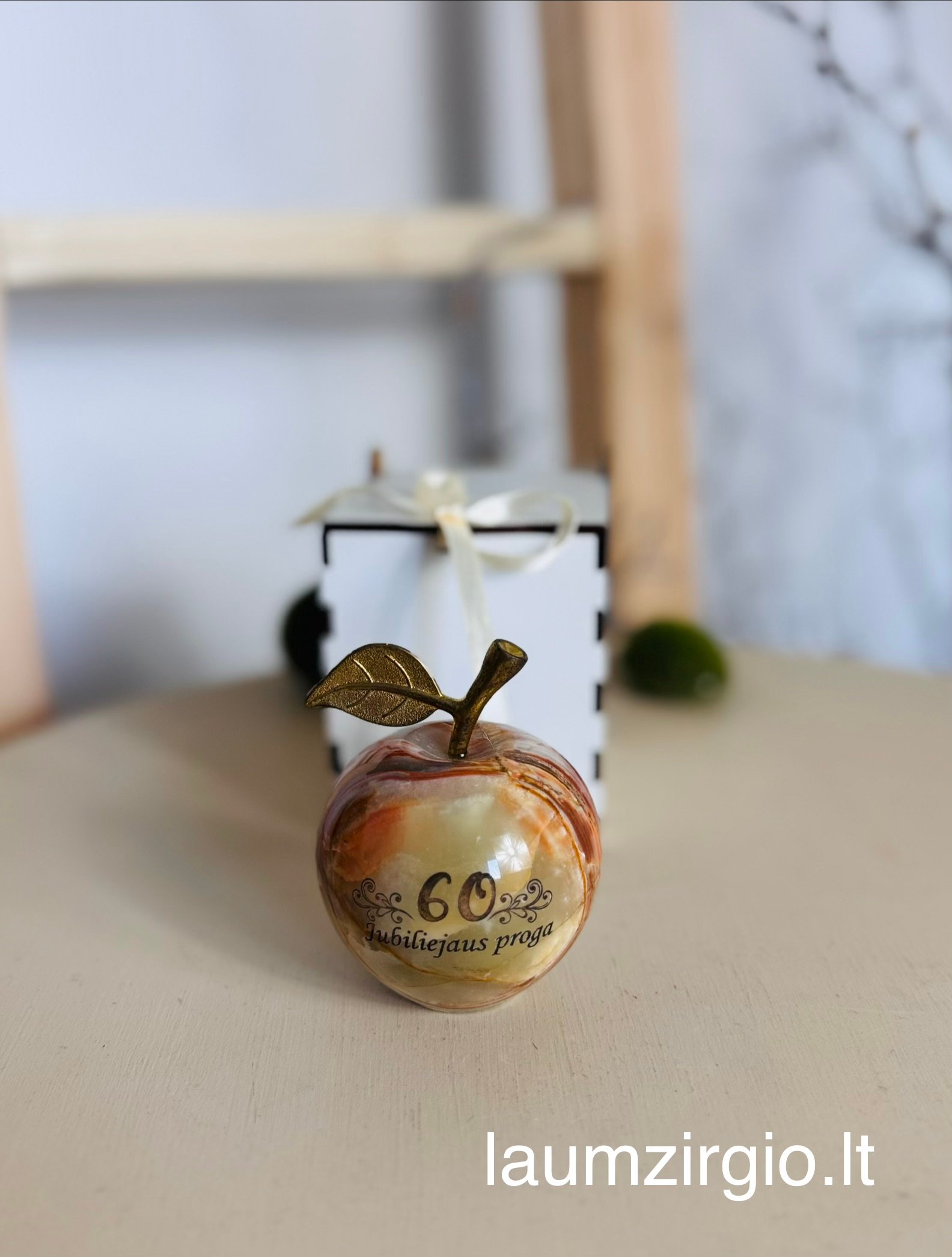Graviruotas onikso akmens obuolys, tai nuoširdi dovana Jubiliejaus proga.
