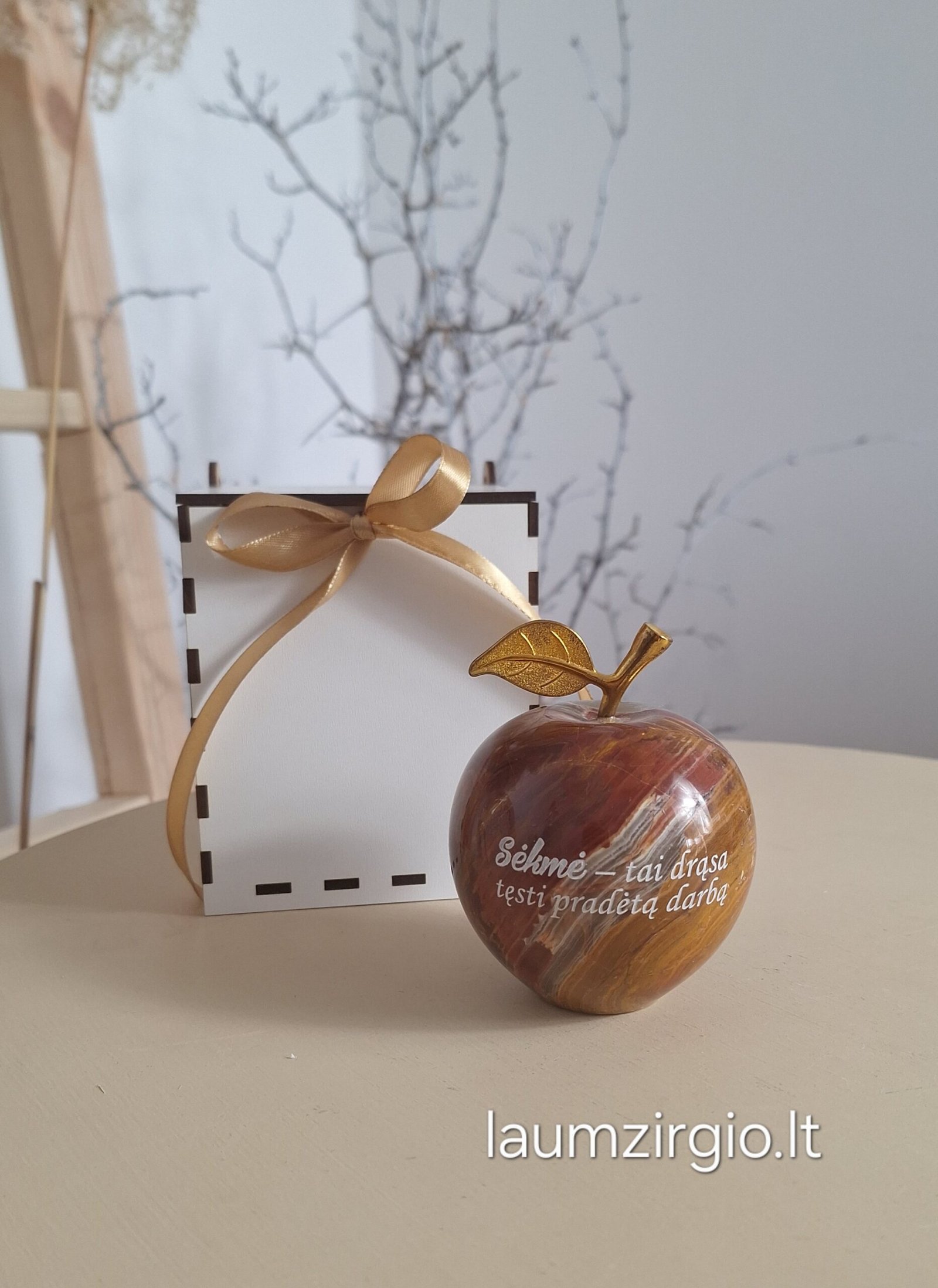 Graviruotas onikso akmens obuolys, tai nuoširdi dovana įvairioms progoms.