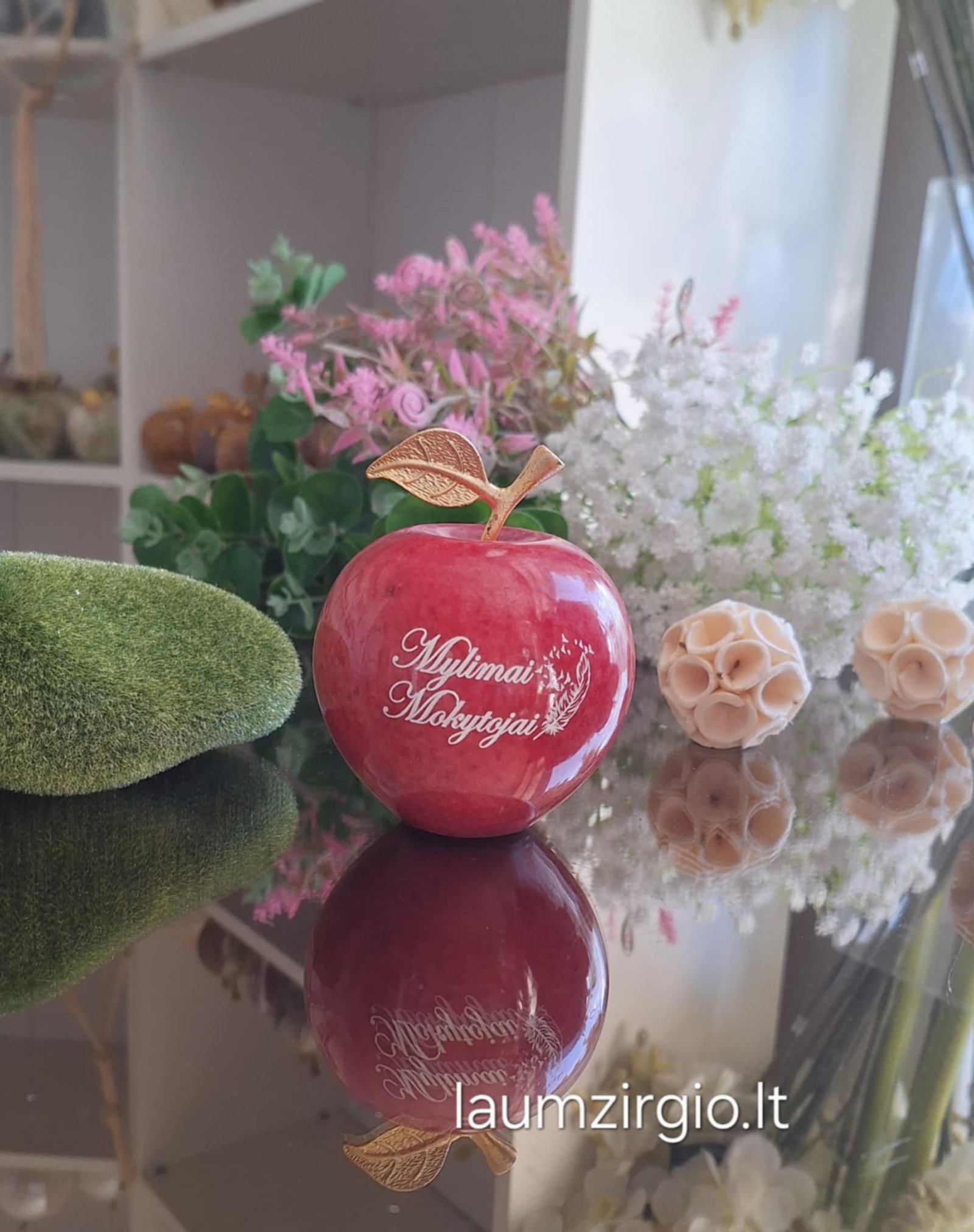Graviruotas onikso obuolys 9cm Mylimai Mokytojai