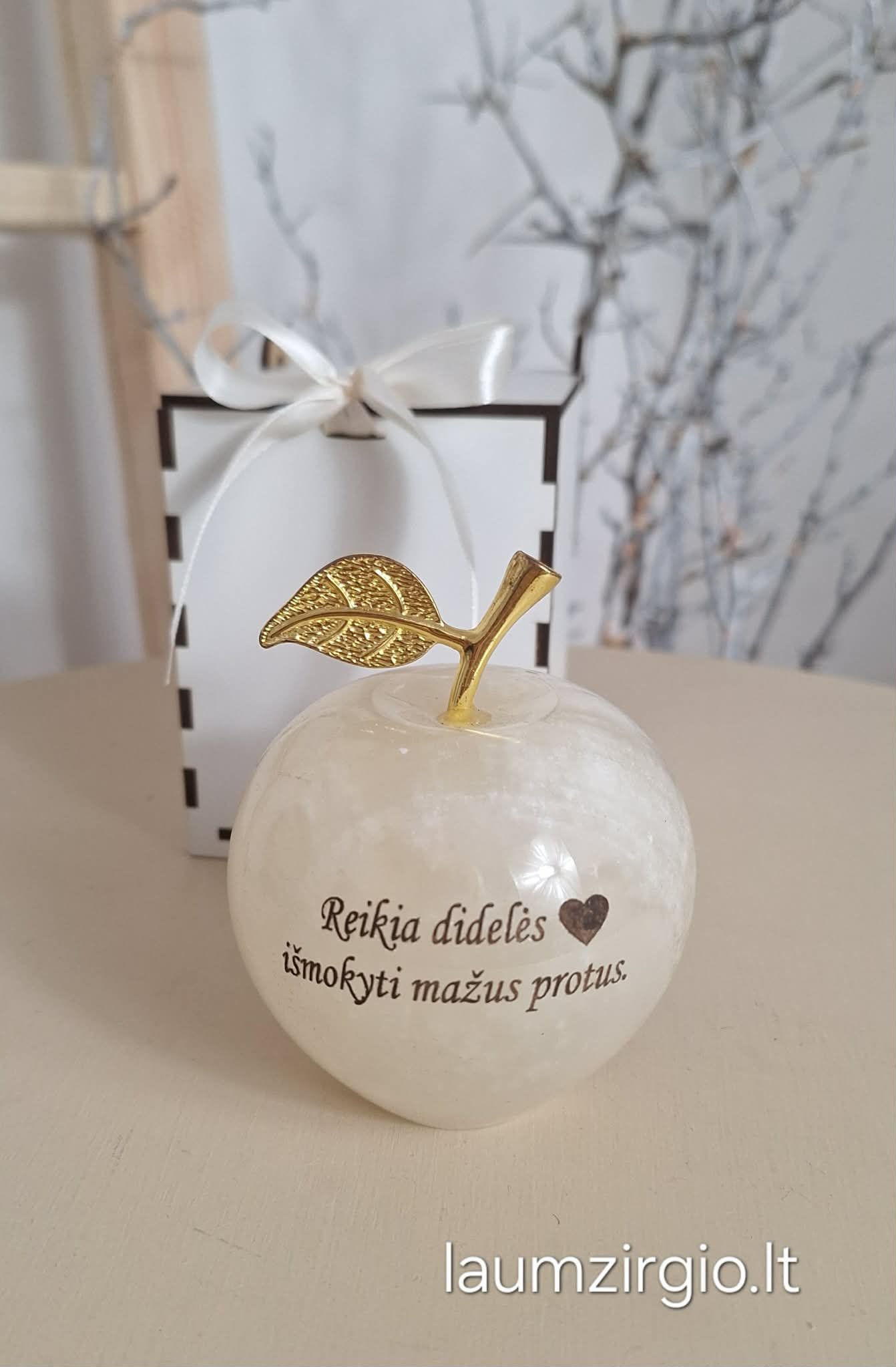 Graviruotas onikso akmens obuolys, tai nuoširdi dovana įvairioms progoms.
