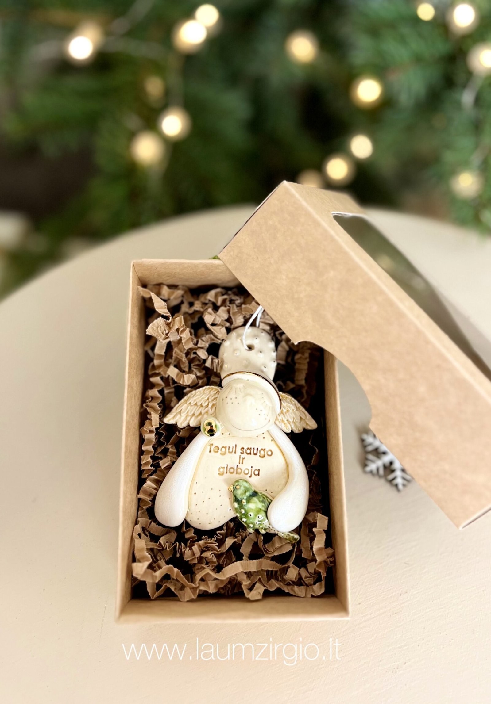 Keraminis angelas dėžutėje “Tegul saugo ir globoja”