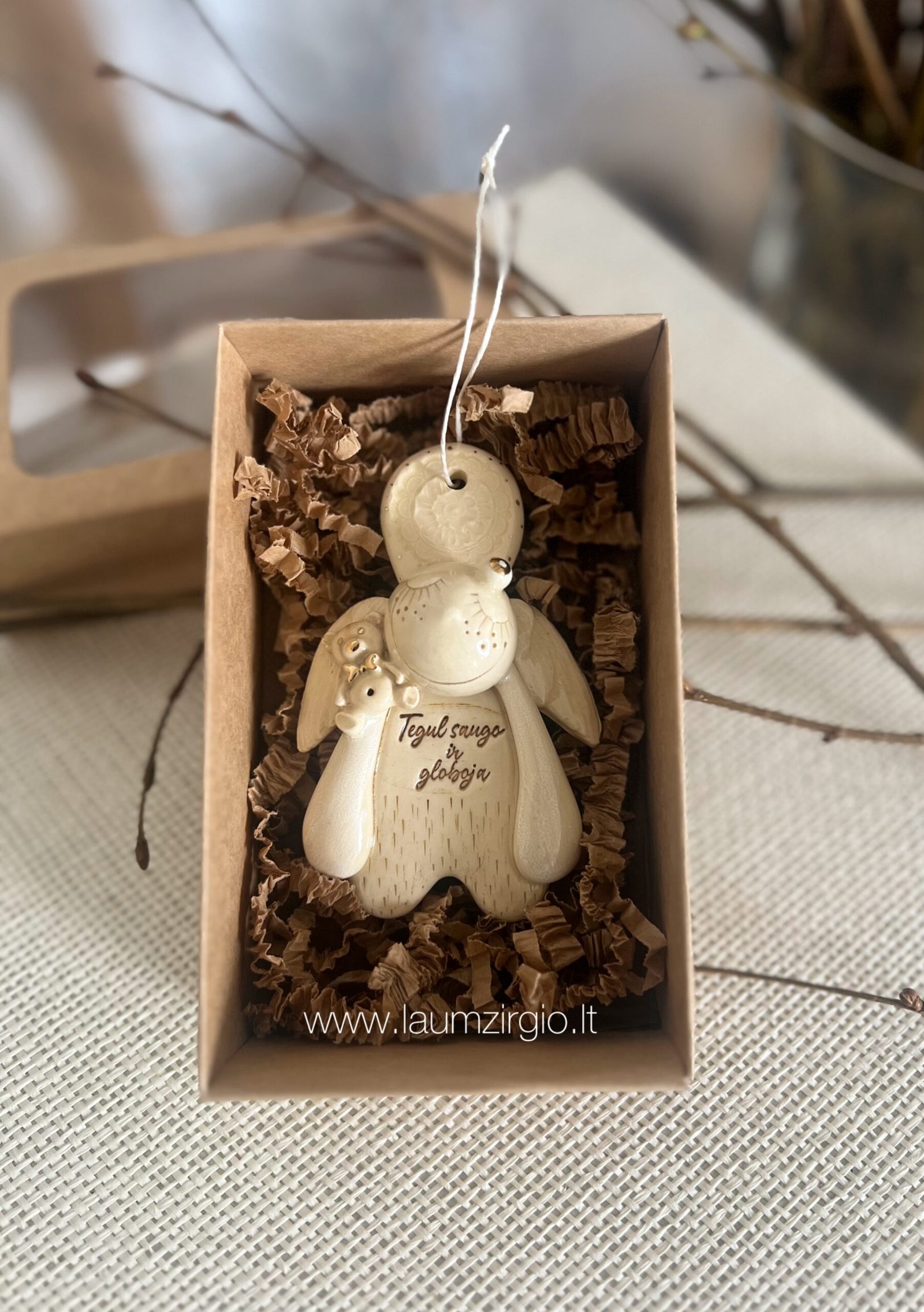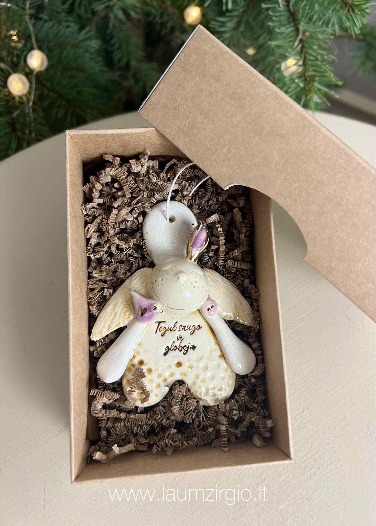 Keraminis angelas dėžutėje “Tegul saugo ir globoja”