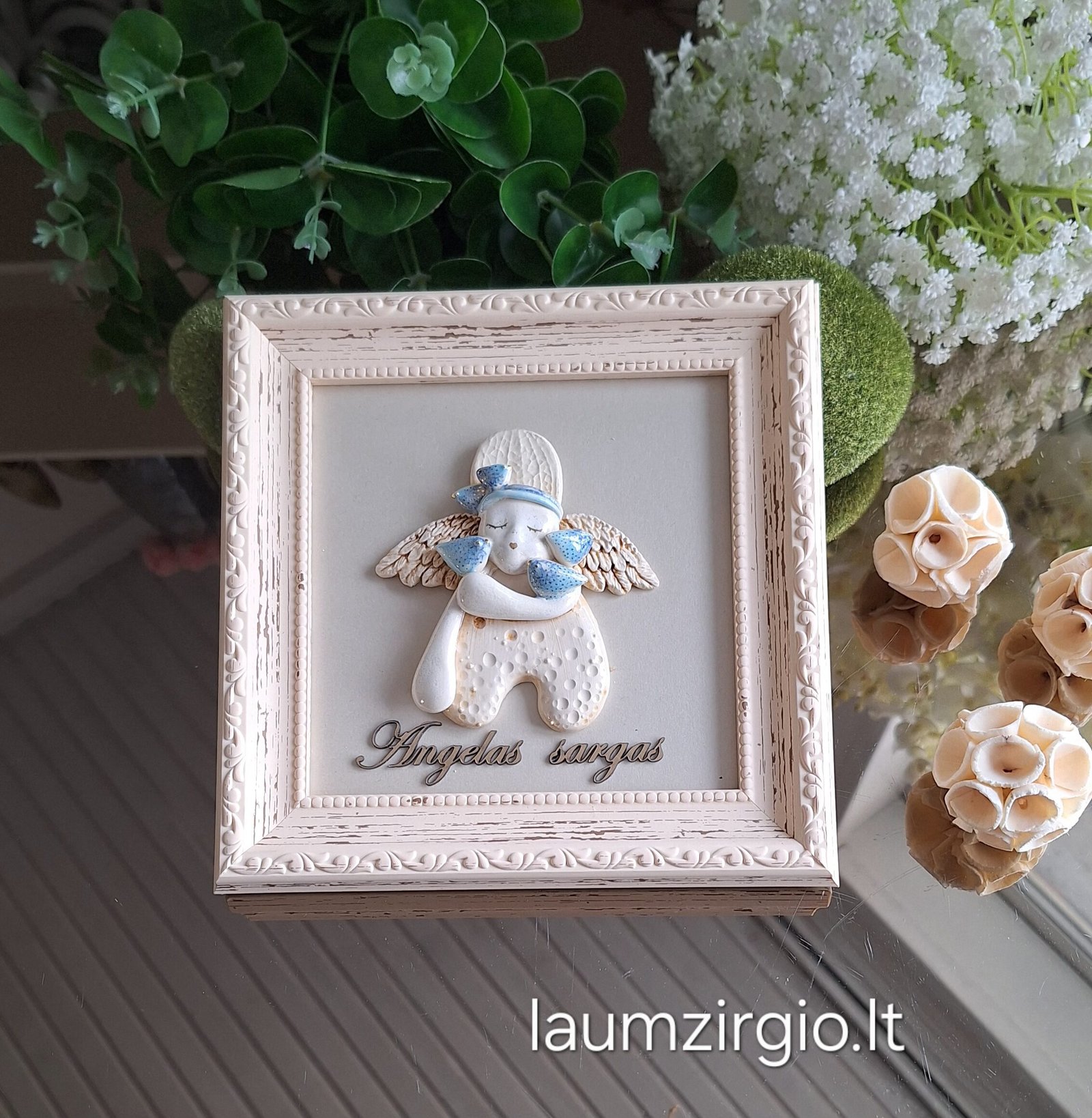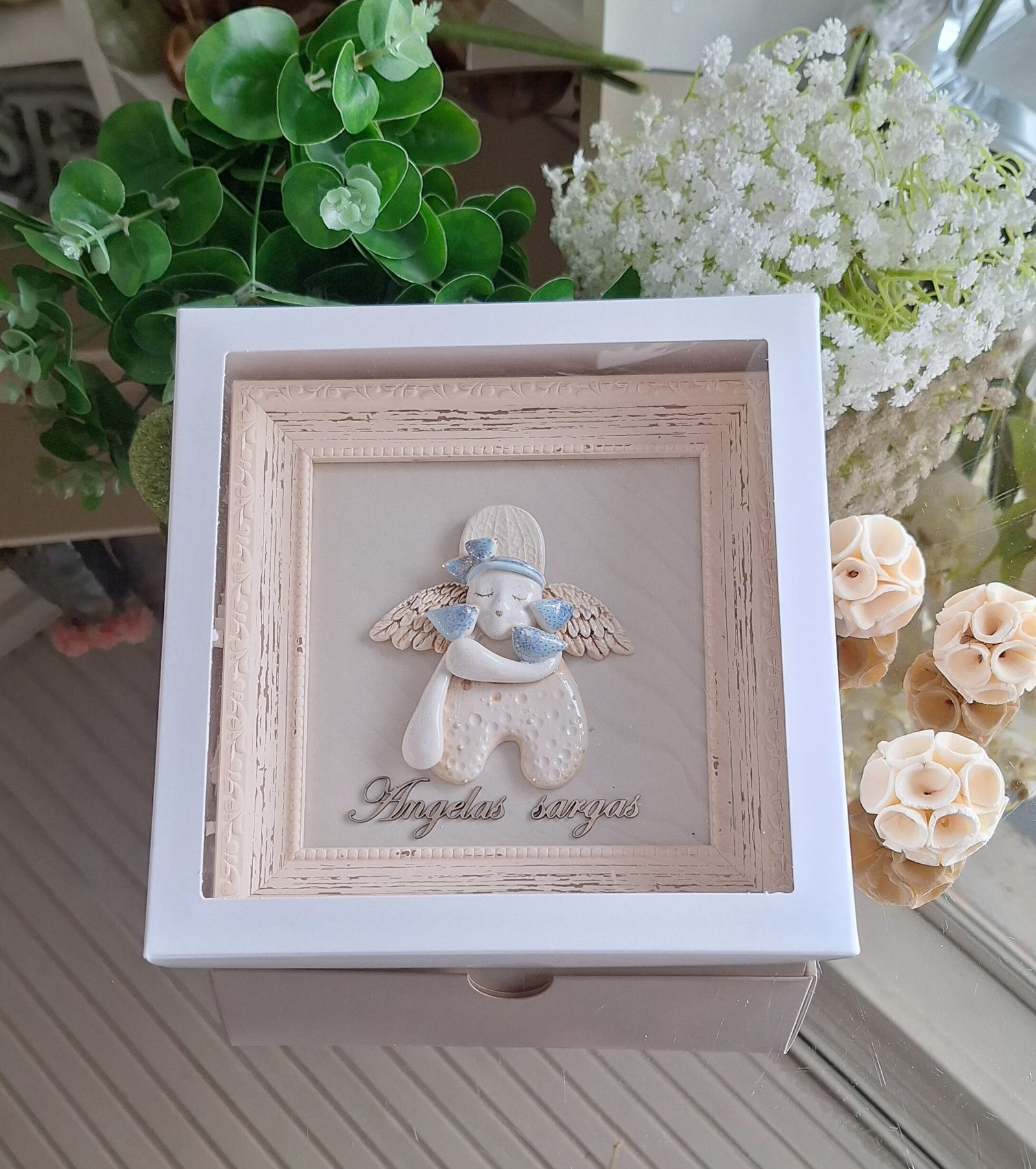 Keraminis angelas rėmelyje „Angelas sargas”