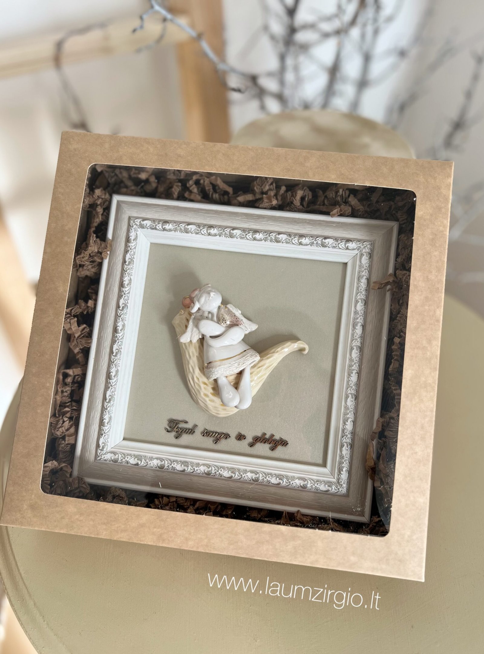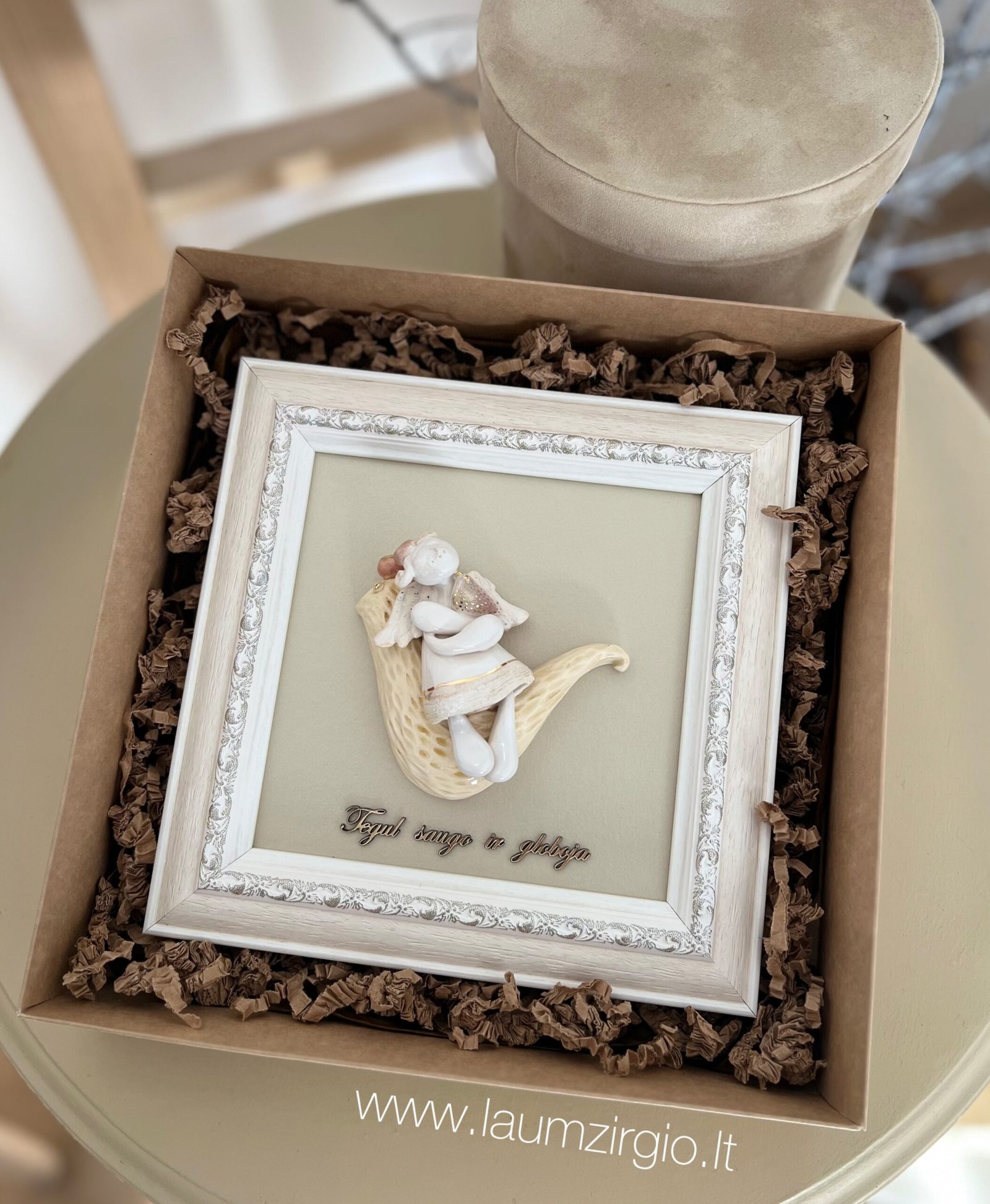 Keraminis angelas rėmelyje “Angelas sargas”