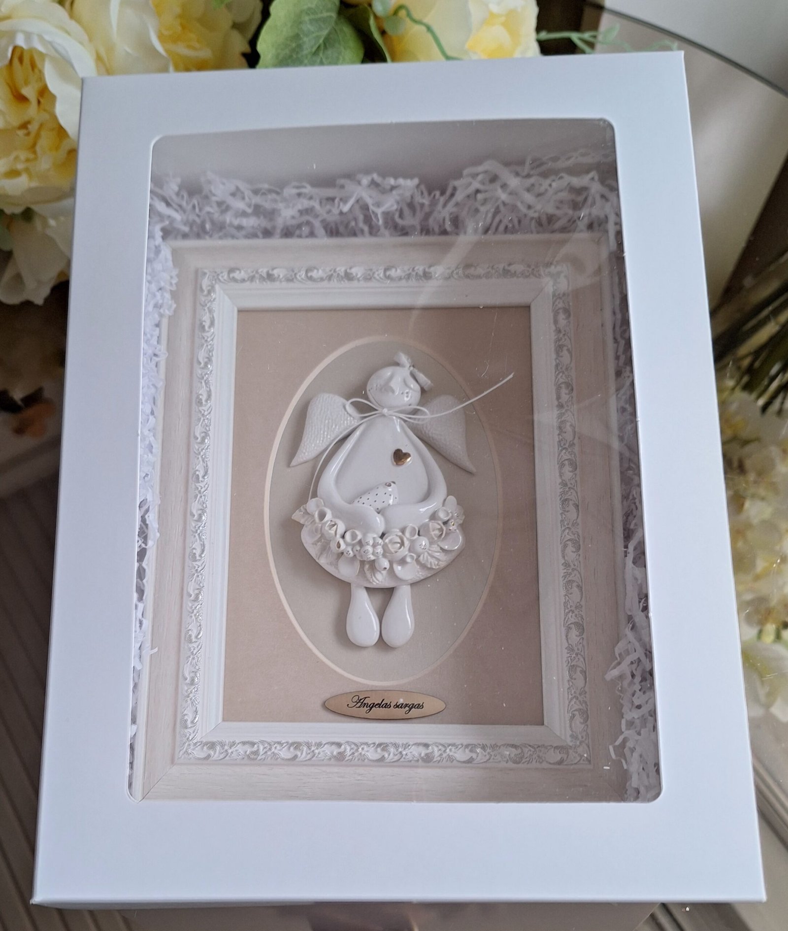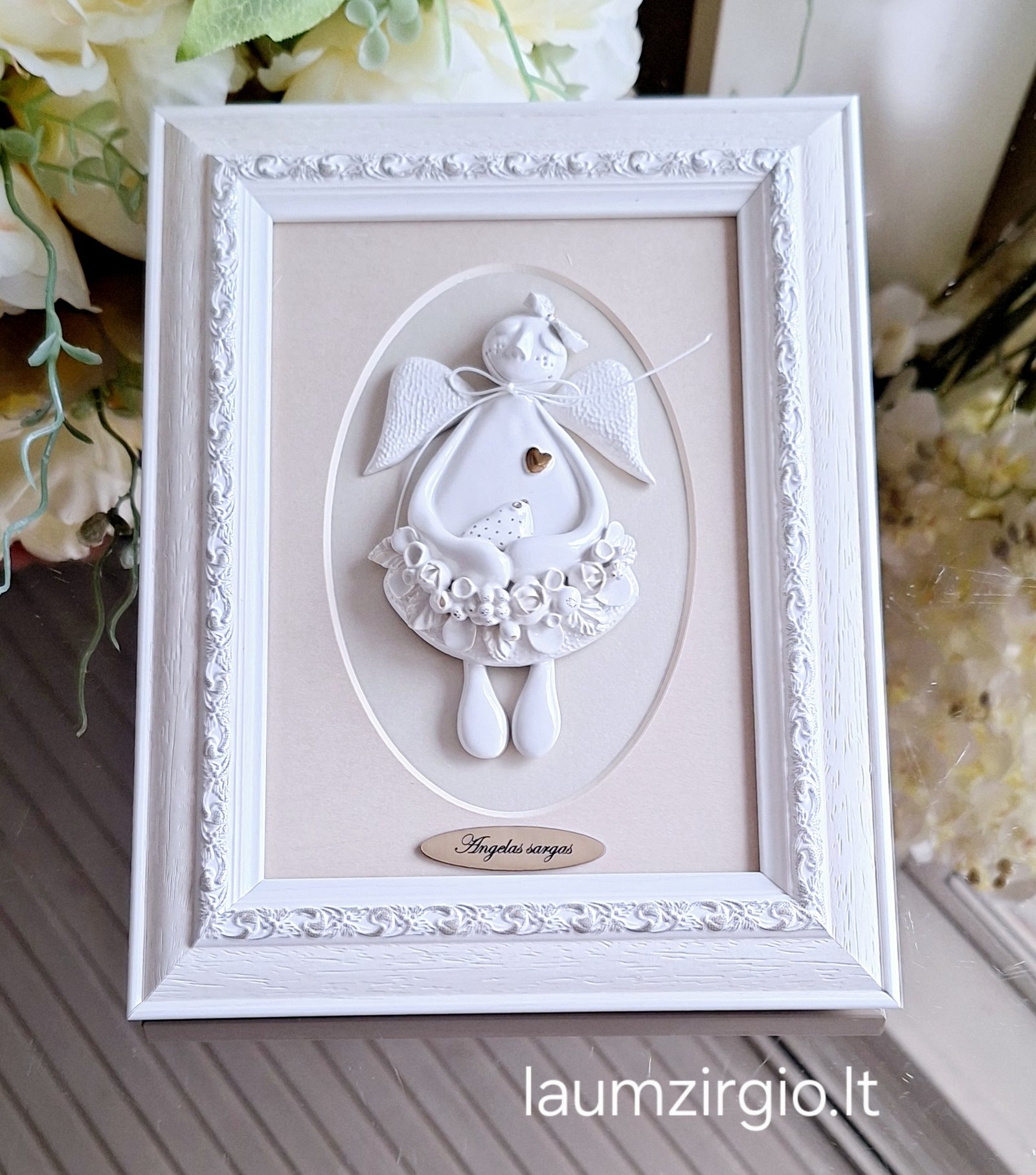 Keraminis angelas rėmelyje „Angelas – saugotojas”