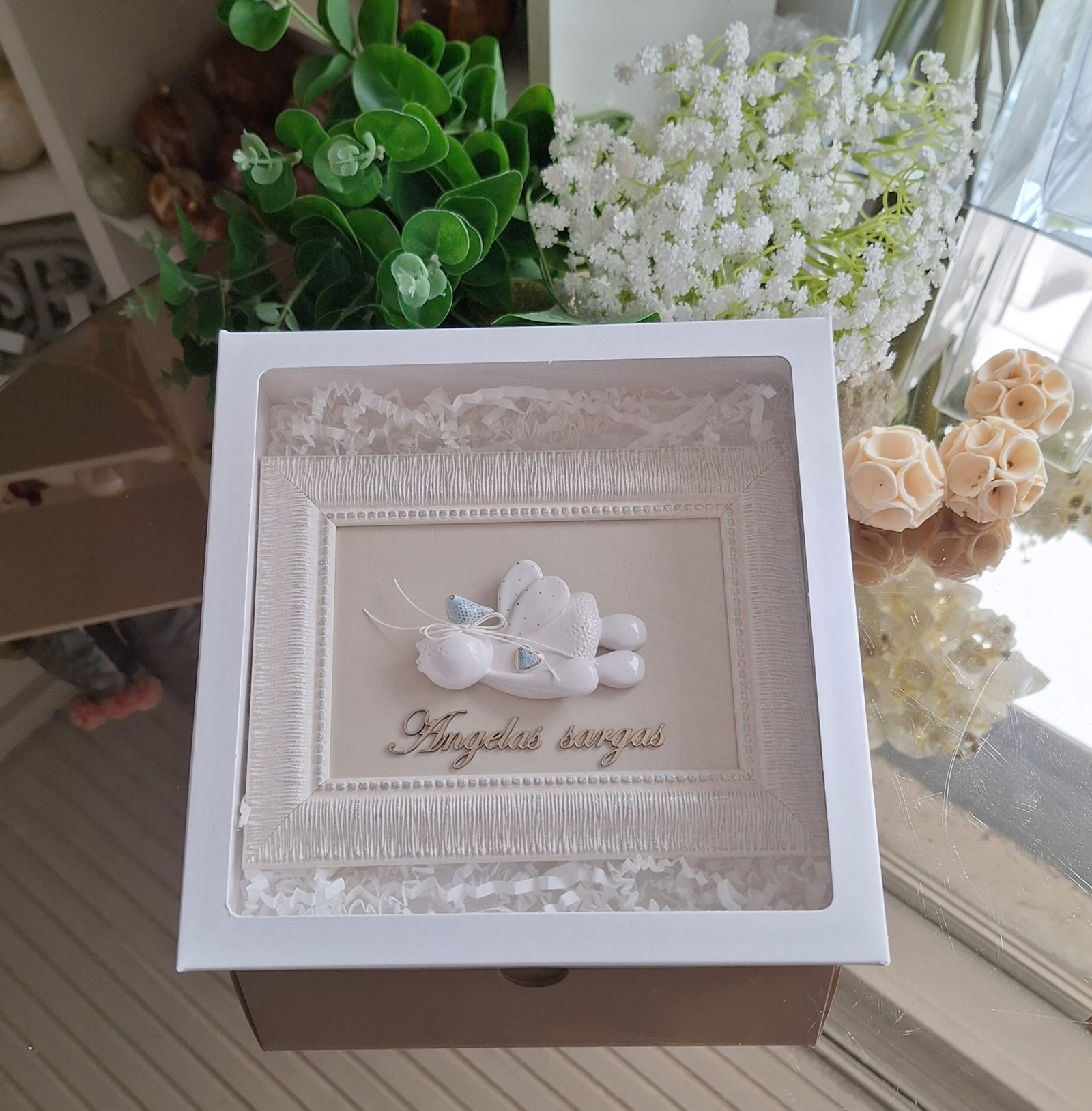 Keraminis angelas rėmelyje “Krikšto angelas”