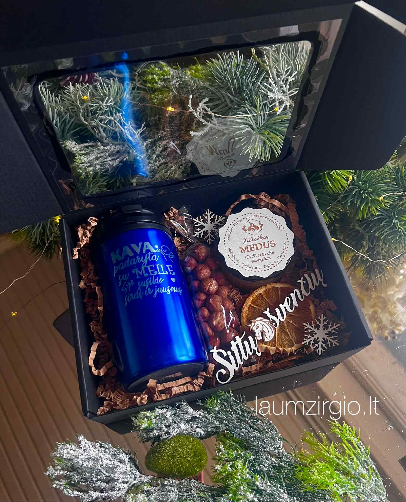 - Su dėžute, balta arba kremine, kurios matmenys 10x10x13 cm.