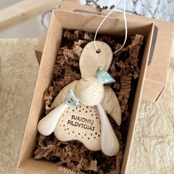 Rankų darbo keraminis angeliukas – subtili ir prasminga dovana ypatingoms progoms. Glazūruotas paviršius suteikia blizgesio ir išskirtinumo, o pakuotė – elegantiška dėžutė – paruošia šį angelą dovanoti iš karto.