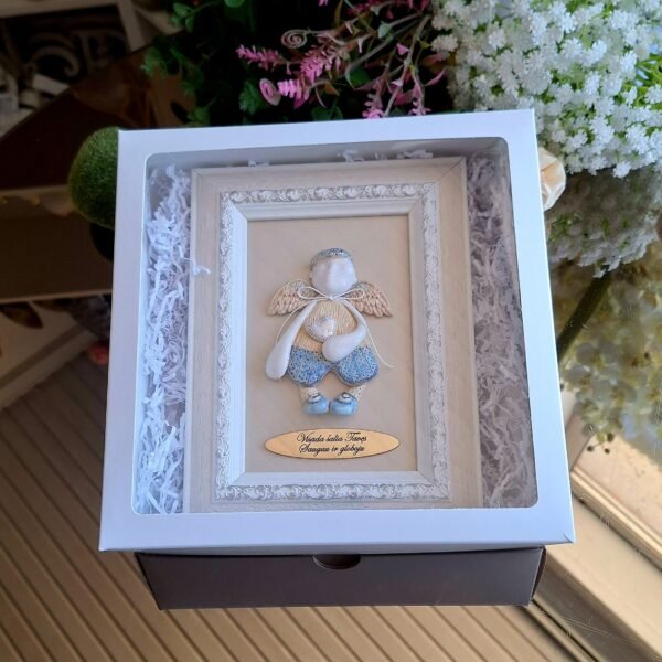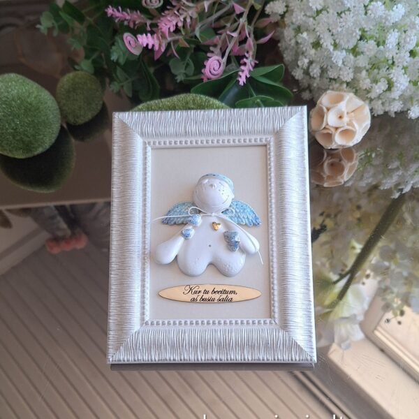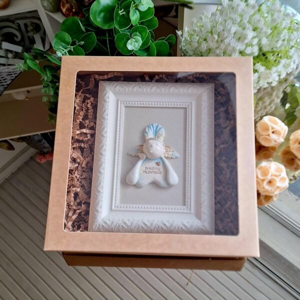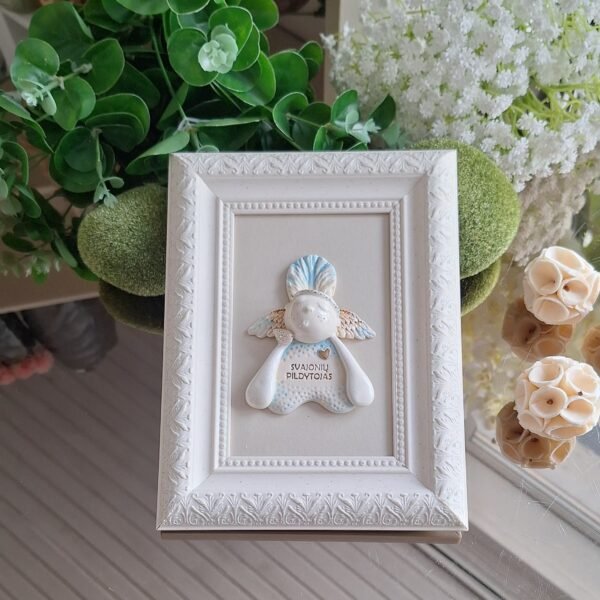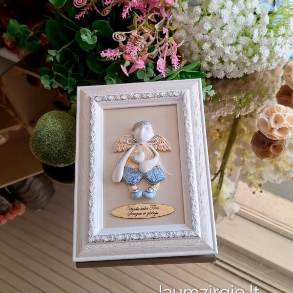 Keraminis angelas rėmelyje „Angelas sargas”